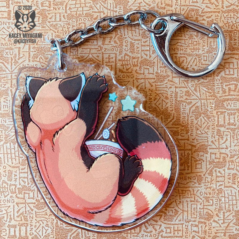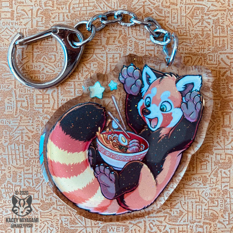 Add a little cuteness to your keys, your backpack, or anywhere else you can think to hang it! This adorable red panda keychain is printed within durable 4mm clear acrylic with a glitter epoxy on the front, and double sided, showing both the front and back of the critter. The charm measures approx. 2.5 inches, and hangs from a C-hook style keychain.