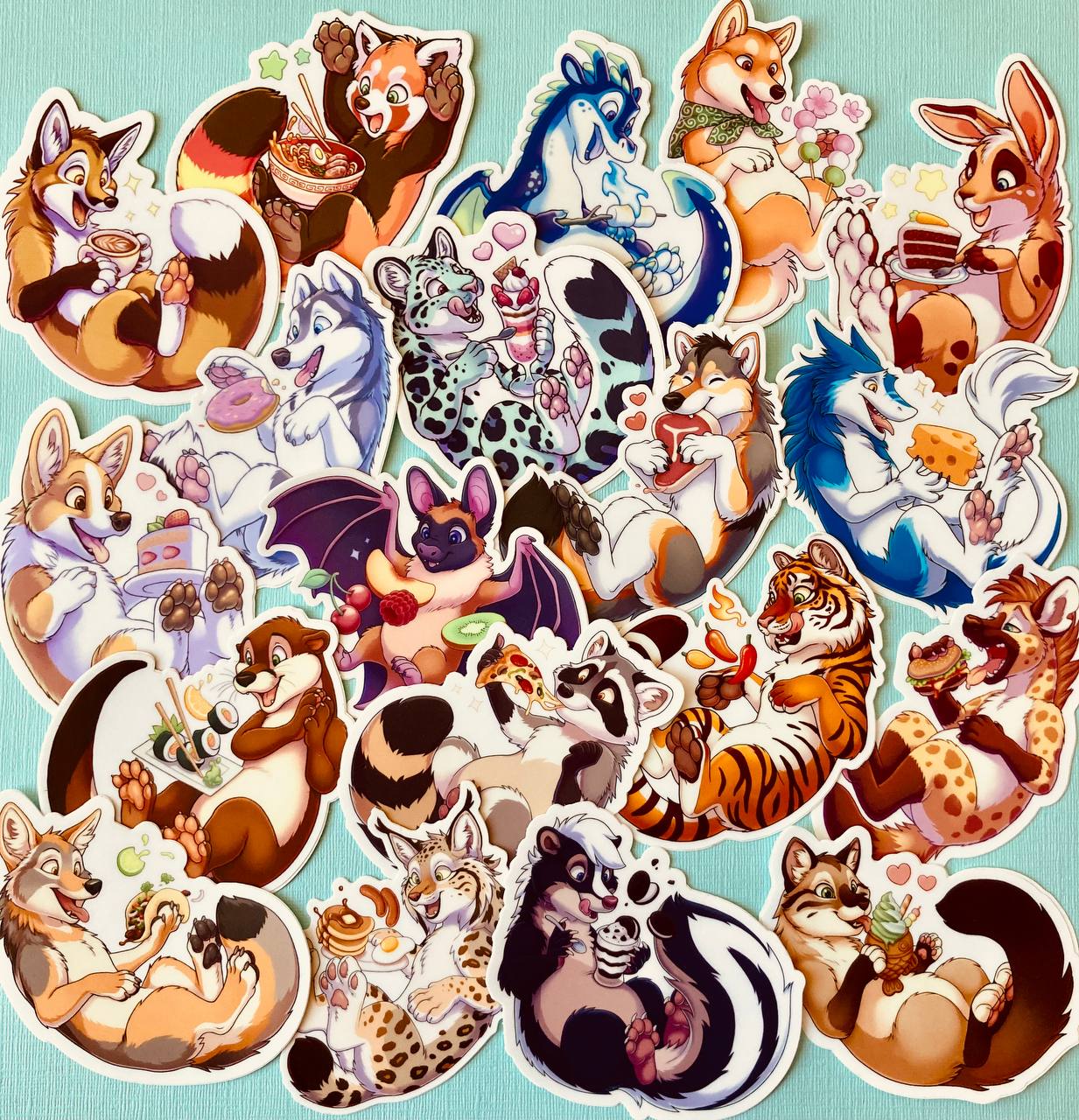 Decorate your laptop, sketchbook, water bottle, or wherever you can think of with these cute stickers of animals enjoying a treat of their choice. Choose from one of 23 adorable designs!