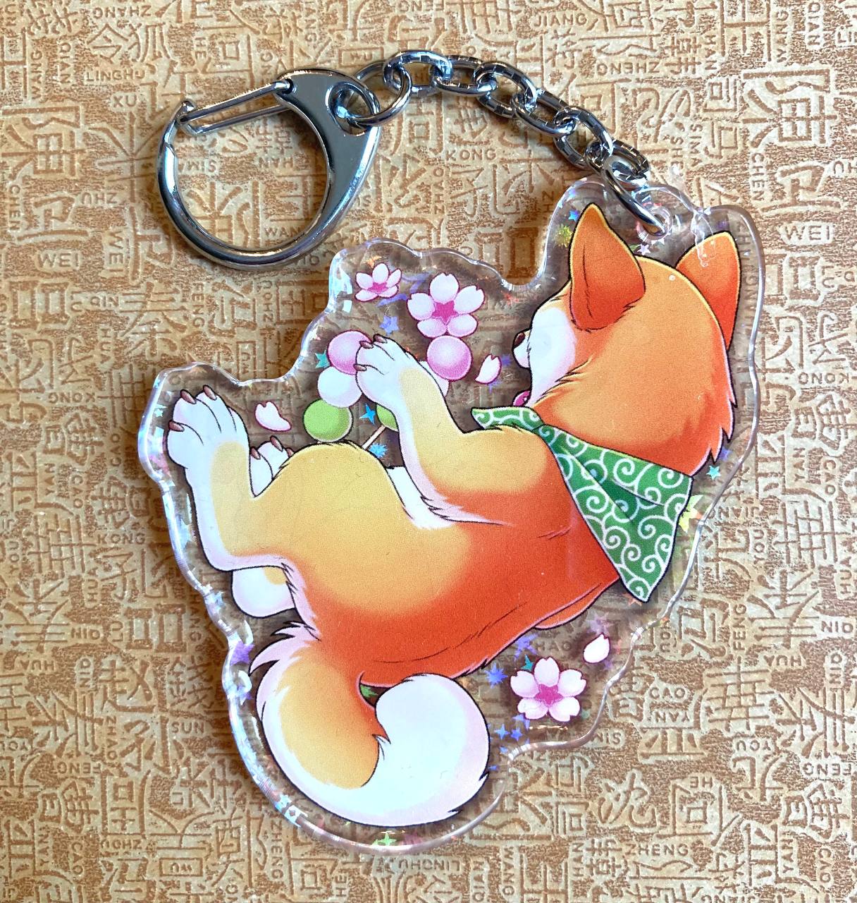 Add a little cuteness to your keys, your backpack, or anywhere else you can think to hang it! This adorable shiba keychain is printed within durable 4mm clear acrylic with a holo epoxy on the front, and double sided, showing both the front and back of the critter. The charm measures approx. 2.5 inches, and hangs from a C-hook style keychain.