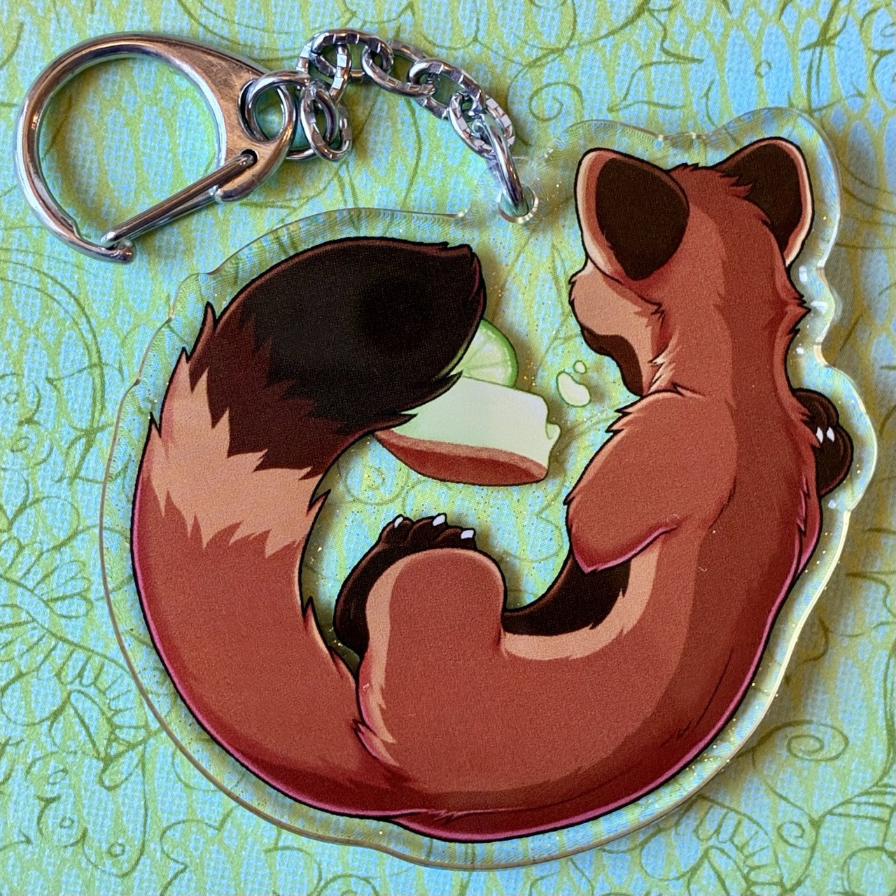 Add a little cuteness to your keys, your backpack, or anywhere else you can think to hang it! This adorable marten keychain is printed within durable 4mm clear acrylic with a glitter epoxy on the front, and double sided, showing both the front and back of the critter. The charm measures approx. 2.5 inches, and hangs from a C-hook style keychain.